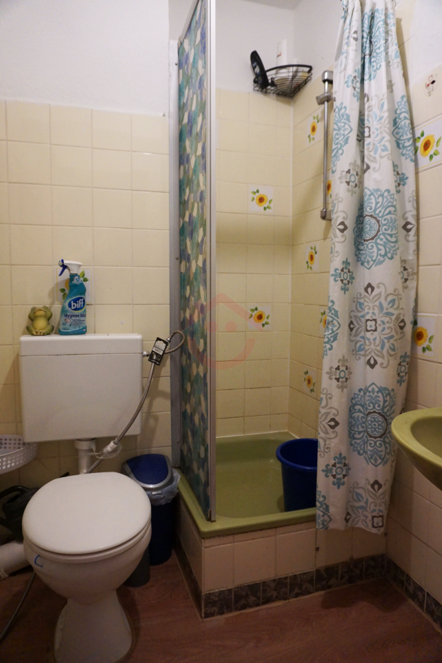 Das Badezimmer ist modern gefliest und mit einer Dusche ausgestattet. Es ist innenliegend und bietet durch seine kompakte Gestaltung alles, was Sie für den täglichen Komfort benötigen.