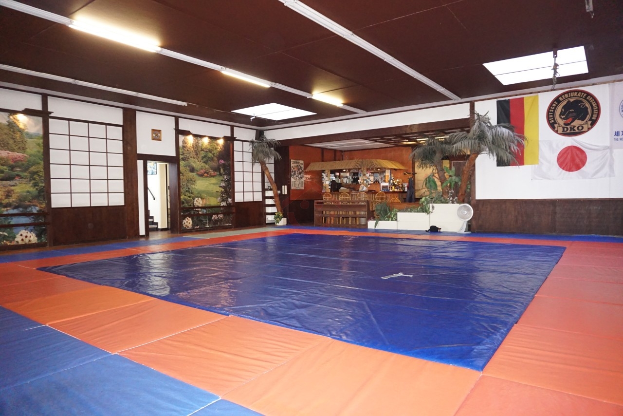 Die Einheit erstreckt sich über eine Fläche von ca. 230 m² und bietet im Eingangsbereich einen sehr großzügigen Raum. Dieser Raum wird aktuell für Kampfsport-Attraktivitäten genutzt und hat eine Originalwettkampffläche von 10 x 10 Meter (siehe Bild), diese ist mit einer Fensterfront, die sehr viel natürliches Licht hereinlässt versehen. Zusätzlich verfügt das Objekt über zwei getrennte Toiletten, zwei Umkleidekabinen, ein Abstellraum und ein Saunabereich. Die dazugehörigen Anschlüsse für Duschen und Sauna sind ebenfalls vorhanden, sowie eine Theke, die den Bedürfnissen gerecht werden.