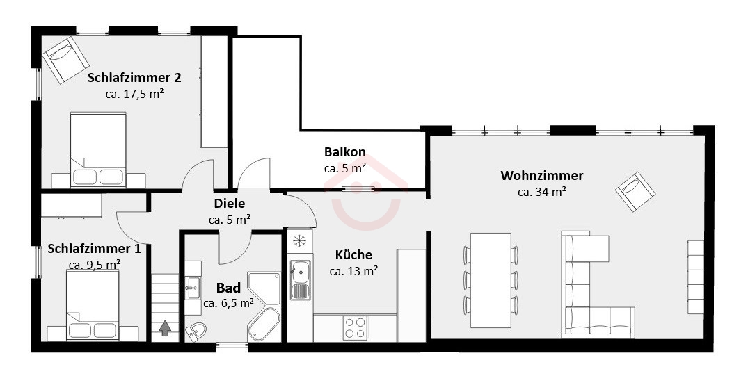 Auf der offiziellen Wohnfläche erwarten Sie fünf Zimmer, die Ihnen maximale Flexibilität in der Nutzung bieten. Das Herzstück des Hauses ist das lichtdurchflutete Wohnzimmer, das mit edlem Echtholz-Parkett ausgestattet ist und die perfekte Bühne für Ihre Möbel bildet. Angrenzend lädt die moderne, funktional geschnittene Küche mit Tageslicht direkt zum Kochen ein. Auch für den täglichen Komfort ist bestens gesorgt: Neben dem modernen Tageslichtbad mit Wanne Dusche steht Ihnen ein innenliegendes Gäste-WC zur Verfügung, das dank einer eigenen zusätzlichen Dusche morgendliche Staus im Bad verhindert.