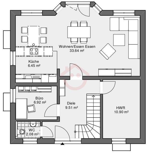 Gemütlich, fein und beliebt ist der Klassiker "Haus Dorlar". Trotz kompakter Abmessungen ist bei diesem Haus Platz für ein kleines Büro. Das Highlight des Hauses ist aber der Wohnbereich, der durch den Trapez-Erker eine ganz besondere Behaglichkeit bekommt.