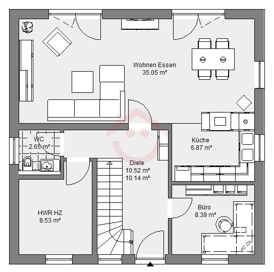 Da es sich hier um eine Projektierung handelt kann alternativ auch ein anderes Haus mit einem anderen Grundriss gebaut werden. Weitere Grundrisse des projektierten Hauses Eschborn sowie alternative Optiken erhalten Sie auf Anfrage gerne als Katalog von uns.
