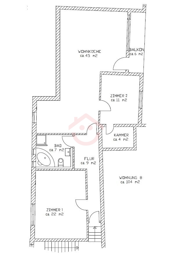 - Zusätzlicher Raum (ca. 4 qm), ideal als begehbarer Kleiderschrank / Ankleide