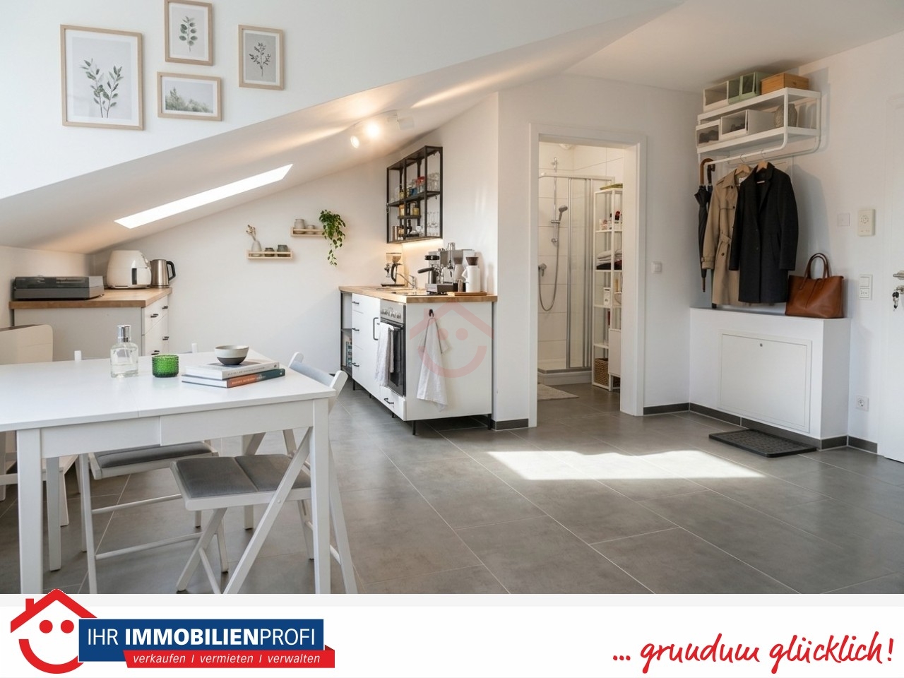 Mit einer Wohnfläche von ca. 36 qm bietet die Wohnung einen gut geschnittenen, offenen Wohnbereich, der Wohnen, Kochen, Essen und Schlafen harmonisch miteinander verbindet.