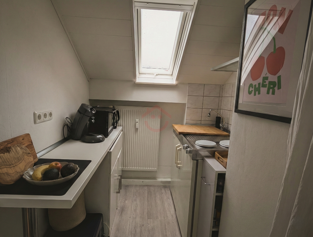 Dachgeschoss (ausgebaut): 2 Zimmer, Küche, Tageslichtbad.